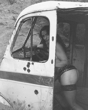 Lyla during a post-apocalyptic photoshoot, Owyhee County, Idaho... Camera: Yashica-Mat... Film: Ilford SFX 200